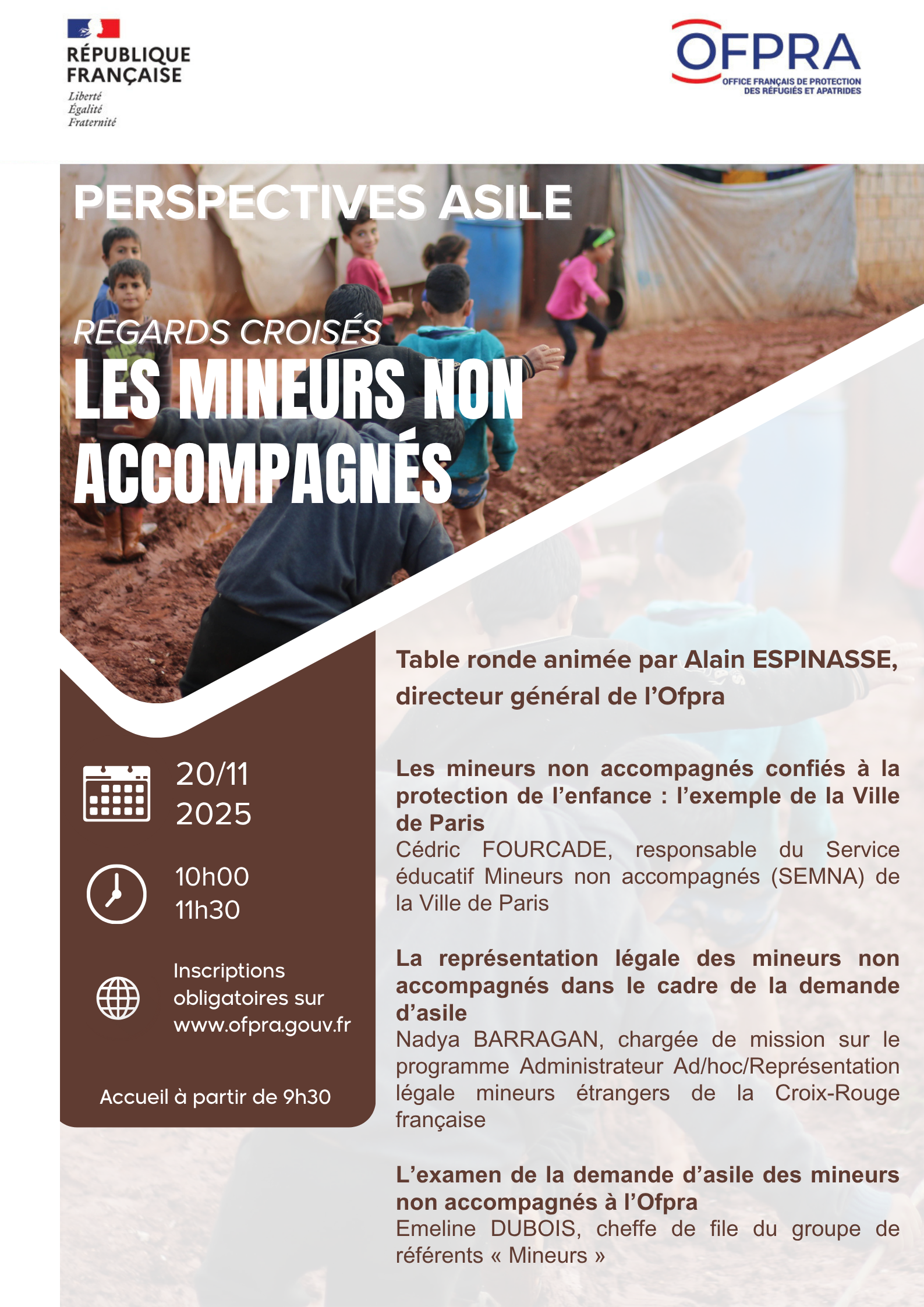 Ces nouvelles « Perspectives Asile » se dérouleront le jeudi 20 novembre et seront dédiées aux mineurs non accompagnés (MNA), un enjeu essentiel et complexe au carrefour du droit d'asile et de la protection de l'enfance.